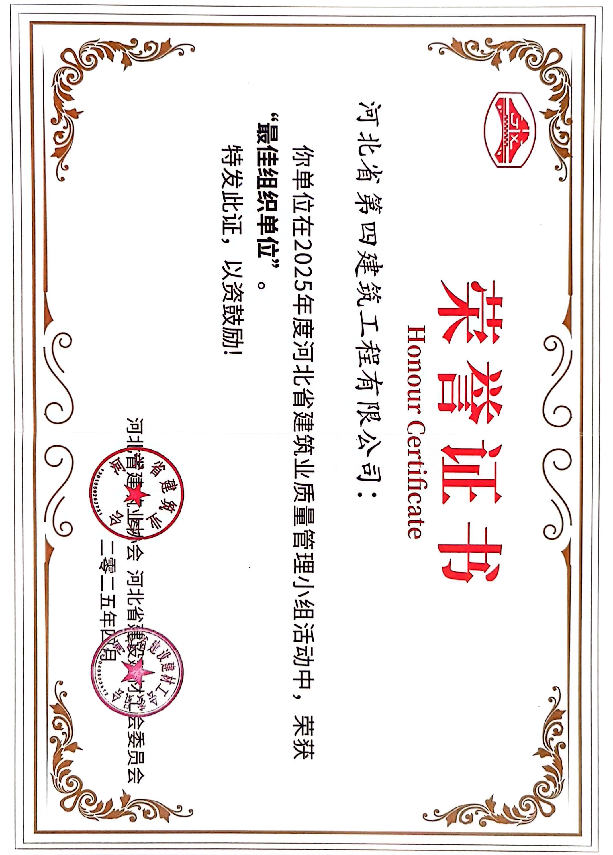 2025年河北省建筑业质量管理小组活动最佳组织单位