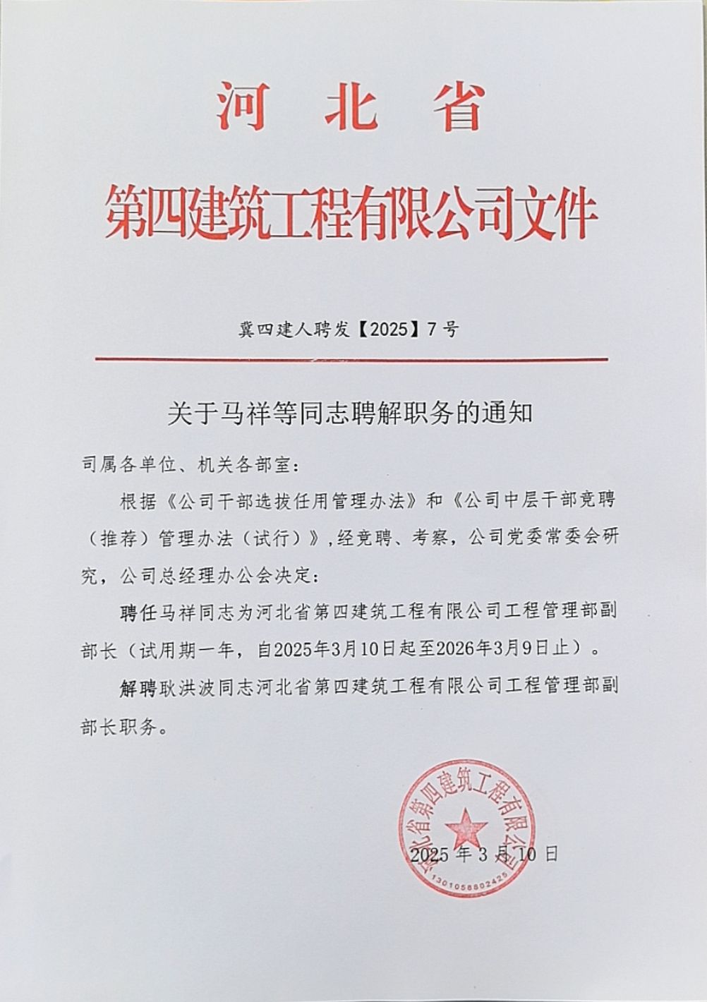 关于马祥等同志聘解职务的通知